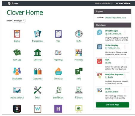 over 20 pre-installed apps or find the right tool among hundreds on the Clover App Market.